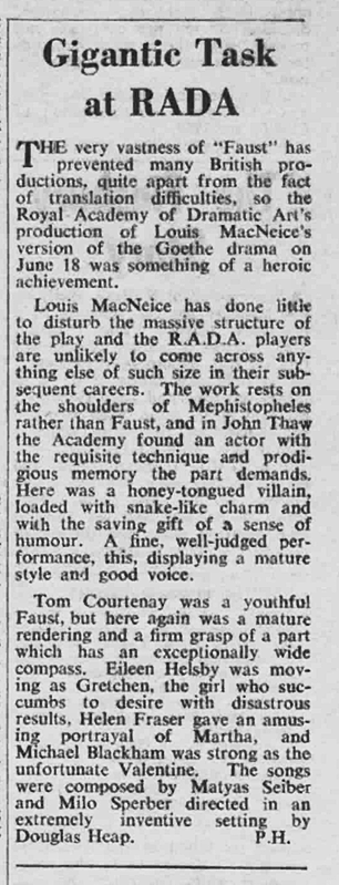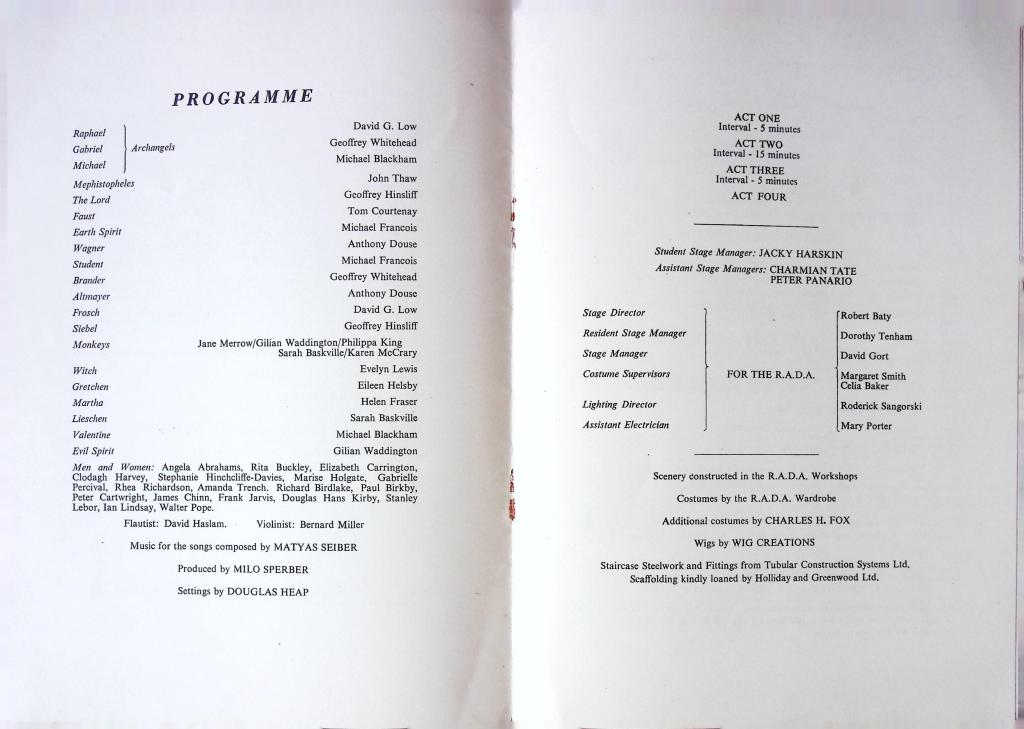 John Thaw playing the role of Mephistopheles in the RADA production of Faust, 1960. (John was 18Years of Age).
