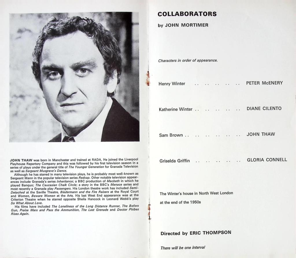 Alongside John Thaw the play starred Peter McEnery and Diane Cilento.