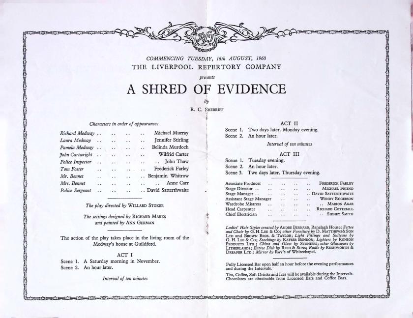 John began his studies at RADA in 1958, when he was only sixteen years old. Although reportedly shy and withdrawn, and initially struggling to settle in, he began to excel in his training, and was gaining excellent reports by his second year. He graduated in 1960 and went straight into a season with the Liverpool Repertory Company, making his stage debut in the play A Shred of Evidence. Rather appropriately given certain future TV roles, John played the Police Inspector!