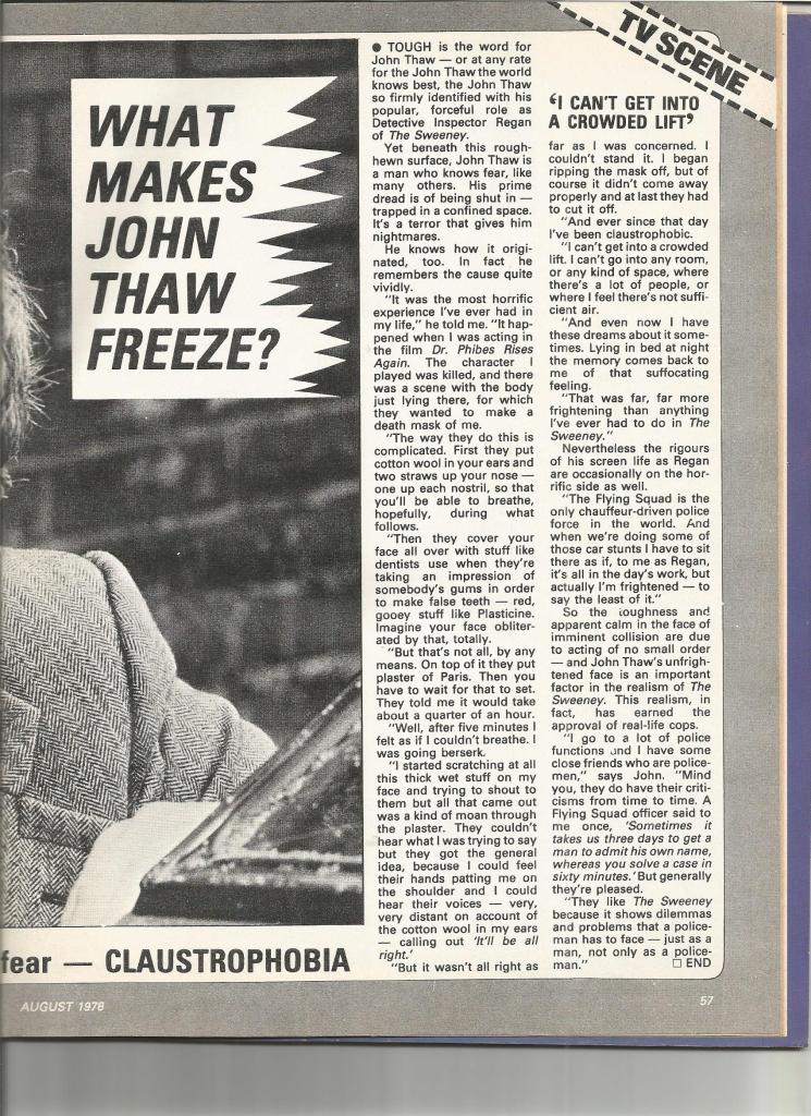 John Thaw Article from film Magazine, Photoplay: August 1978.