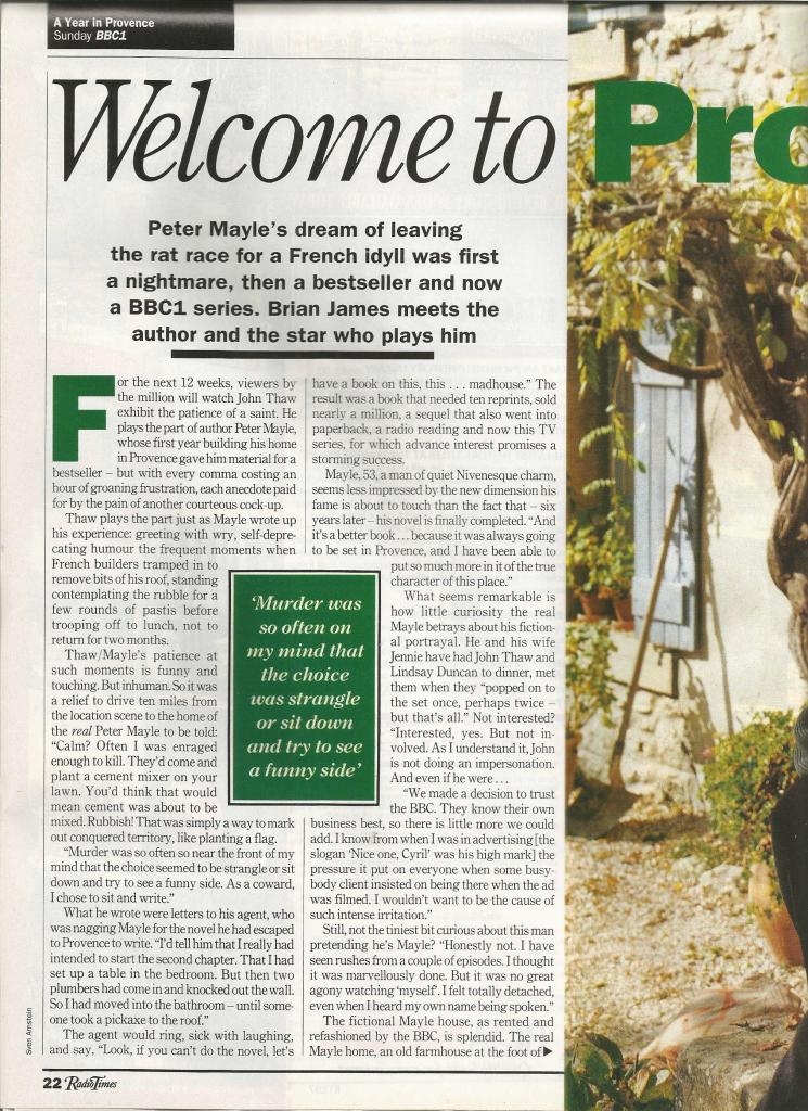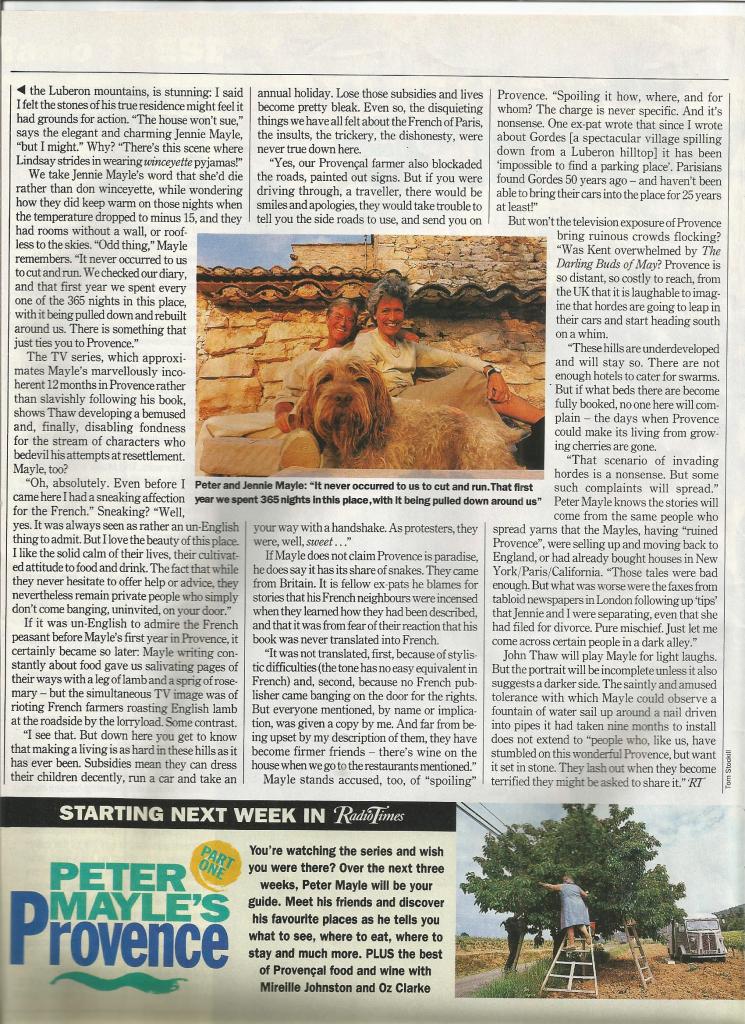 Article from the British TV magazine, Radio Times, 1993. A Year in Provence.